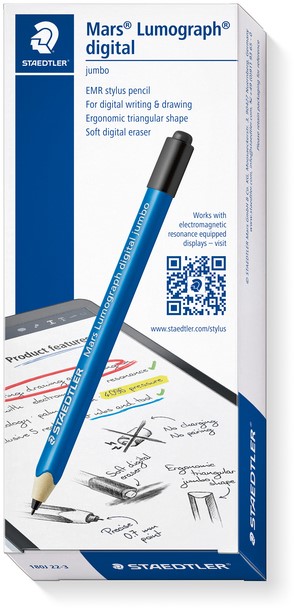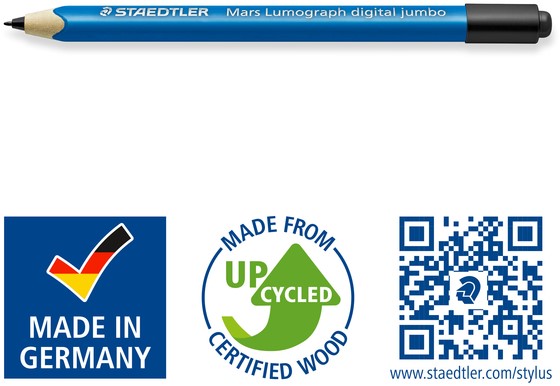 • STAEDTLER Lumograph digital jumbo: de comfortabele dikke driehoekige vorm is vooral geschikt voor kinderhanden, maar hij is ook comfortabel voor volwassenen en stelt u in staat om te schrijven zonder moe te worden.