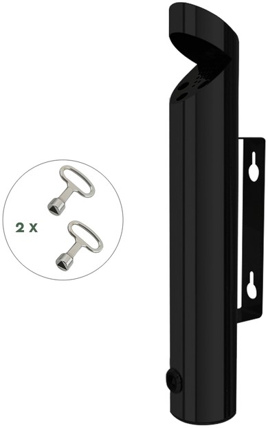 • De zuil is zeer eenvoudig te legen. De staande asbak van BRASQ is uitgerust met een metalen opvangbak waar de peuken in terecht komen. Door deze constructie, is er een beperkte zuurstof toevoer en doven de peuken snel. Dit komt de veiligheid van gebruiker en omgeving ten goede. De peukenzuil kan eenvoudig worden geleegd door het met de bijgeleverde sleutel de asbak te openen. De opvangbak kan er eenvoudig worden uitgepakt worden en geledigd. Vervolgens plaatst men de opvangbak terug en wordt de asbak weer gesloten. Montage: De wandasbak kan zeer eenvoudig bevestigd worden en beschikt daarvoor over voorbewerkte uitsparingen en montagemateriaal. Tot slot, de asbak is geschikt voor iedereen die op een professionele wijze de sigarettenpeuken wilt opvangen, waardoor de werk- en leefomgeving opgeruimd en schoon blijft.