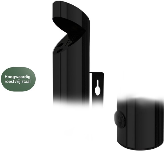 • Deze fraaie wandasbak, ook wel kolomasbak, van BRASQ draagt bij aan een schone en opgeruimde omgeving als het gaat om sigaretten of sigaren peuken. Deze kolomasbak heeft een luxueuze en moderne uitstraling en is gemaakt van geborsteld hoogwaardig RVS (Stainless Steel 304). Door de hoge mate van corrosiebestendigheid van dit materiaal kan hij weer en wind doorstaan. Met een hoogte van 452cm, en een doorsnede van 7,5 cm aan de bovenzijde, staat hij nooit in de weg. De BRASQ AT200 heeft een beschermingsdak en handig uitdrukvak, ook wel zeef, om de sigaret te doven en 3 gaten om de peuk te deponeren.