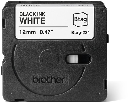 • Originele Brother Btag-231 tapecassette met niet-gelamineerde, witte labeltape en zwarte tekst voor het maken van labels van 12 mm breedte.