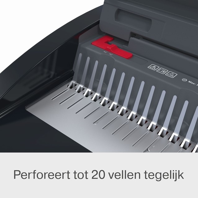 • De CombBind® CB20 is een betrouwbare en compacte handmatige inbinder, ontworpen voor gedeeld gebruik in kantoor- en schoolomgevingen met gemiddelde inbindbehoeftes. Hij kan maximaal 20vel papier van 80 gram perforeren en maximaal 330vel tegelijk efficiënt inbinden met inbindruggen van 28mm. Het lichtgewicht, ruimtebesparende ontwerp maakt hem ideaal voor gebruik overal en altijd, en gemakkelijk op te bergen als hij niet in gebruik is. Voorzien van een handig opvangbakje en een opbergvak voor accessoires.
