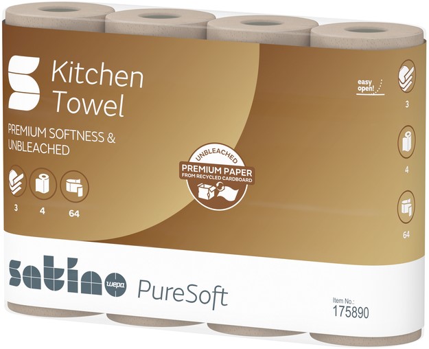 Keukenrol Satino PureSoft 3laags 4x64 vel naturel 4 Rol