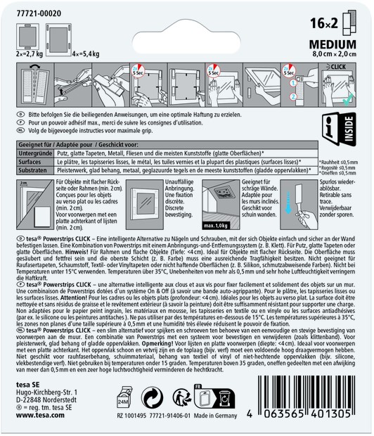 Kleefstip tesa Powerstrips Click Medium 16 paar wt 32 Blister