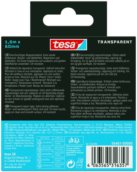 • tesa® Ultra Power Under Water Transparent biedt betrouwbare bescherming voor alle reparaties buiten.