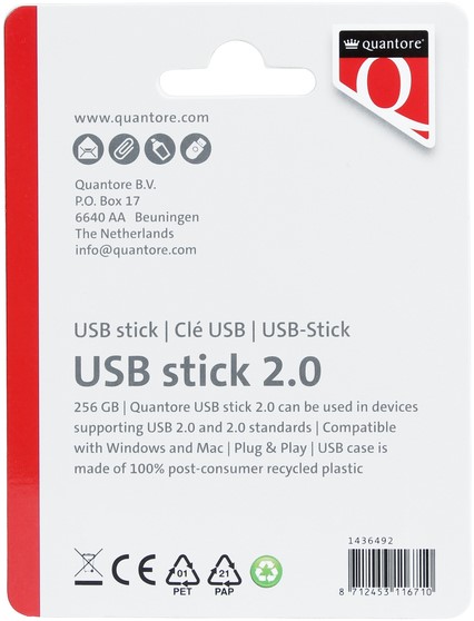 USB stick 2.0 Quantore USB-A 256GB zwart 1 Stuk