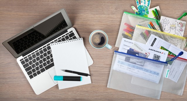 • Versterkte transparante opbergtassen van A5-formaat met ritssluiting.