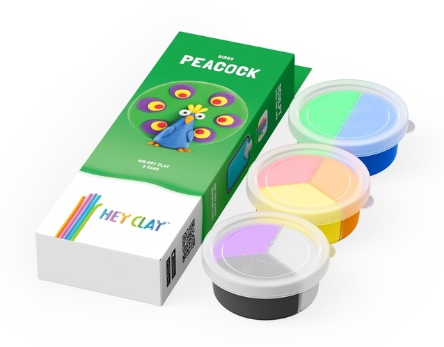 Klei 3potjes Hey Clay Peacock Met HEY CLAY worden kinderen ondergedompeld in creativiteit in verschillende dimensies. De fysieke ervaring van het boetseren van een personage ontwikkelt hun verbeelding, fijne motoriek en creativiteit. De digitale ervaring van de app helpt bij het bouwen van een personage op een eenvoudige en leuke manier, waarbij ze leren over zijn persoonlijkheid, eigenschappen en grappen. Zelfs na het in elkaar zetten van het personage houdt het plezier van de creatieve ervaring niet op - de klei hardt binnen een paar uur uit en wordt speelgoed om voortdurend mee te spelen. Een kind kan het op een plank zetten, aan vrienden laten zien of mee naar school nemen - wat ze ook bedenken, het gegoten figuurtje zal niet smelten en behoudt de gegeven vorm. Veiligheid We hebben het ideale materiaal gemaakt om het meeste uit boetseren met klei te halen: licht, zacht, buigzaam en voelt prettig aan. Het heeft een speciale samenstelling, zodat het niet blijft plakken aan handen, kleding, meubels en in het algemeen aan alles behalve de kinderharten. Onze klei is niet giftig, heeft geen specifieke geur, vervuilt het milieu niet en is natuurlijk veilig voor kinderen. Het is gemaakt in strikte overeenstemming met de EAC, CE en ASTM kwaliteitsnormen. Let op! Hoe lekker en aantrekkelijk de figuurtjes ook zijn, eet ze alsjeblieft niet op, want ze zijn nog steeds van klei gemaakt