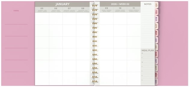 Met deze kleurrijke Flowers Bouquet wire-o familieplanner, hou je al je afspraken overzichtelijk bij de hand, en heb je dankzij het grotere formaat plaats genoeg om alles te noteren! In deze planner is ruimte voor 5 gezinsleden en hun afspraken, hobby's en uitstapjes, die je met de bijhorende coole stickers kan aanduiden. Dankzij de wire-o ligt deze agenda mooi open en kan je makkelijk op beide pagina's schrijven. Binnenin vind je full coulour pagina's, met telkens 7 dagen op 2 pagina's, ruimte voor notities en een to-do lijstje. Het binnenwerk is in het Engels. De flexibele kaft heeft een matte finish met een elastische sluiting.