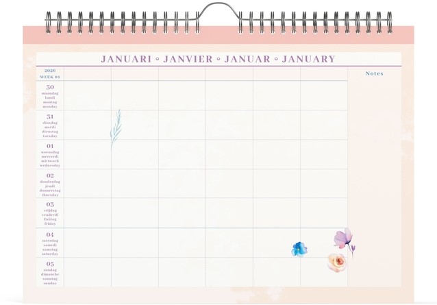 Zoek je een praktische planner voor het hele gezin? Dan ben je bij deze fleurige familiekalender vol toffe prenten aan het juiste adres! Met een XL formaat en ruimte voor 6 gezinsleden behoud jij het overzicht. Deze kalender heeft 1 pagina per week, 6 kolommen en ruimte voor notities.