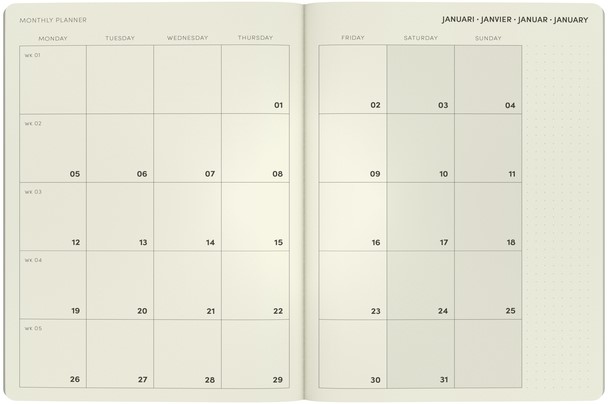Met deze praktische QC Colour 'Blush Pink' office agenda, hou je al je afspraken overzichtelijk bij de hand, en heb je dankzij het grotere formaat plaats genoeg om alles te noteren. Binnenin vind je telkens 7 dagen op 2 pagina's ingedeeld van 8h tot 22h en ruimte voor notities. Het binnenwerk is in het Nederlands, Frans, Engels en Duits. De harde kaft heeft een matte finish, afgeronde hoeken en een elastische sluiting.