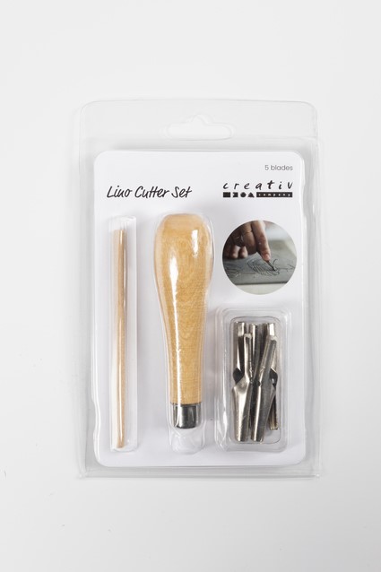 Linoleummessen met verschillende vormen en lengtes die in een houten handgreep worden gestoken. Meestal gebruikt om een ontwerp uit te snijden in een drukblok van linoleum of rubber. De messen zijn eenvoudig aan te brengen en uit te nemen uit de houten handgreep. Steek het uiteinde van het mes in de houten handgreep, vervolgens het houten stokje en druk daarna lichtjes om het mes vast te zetten. Neem het mes uit door het houten stokje opnieuw in te drukken en vervolgens naar buiten te trekken. Als u een houten handgreep voor meer dan één mes wilt, kunt u deze afzonderlijk kopen. Zorg er altijd voor dat u van zich af snijdt, want de messen kunnen bijzonder scherp zijn..