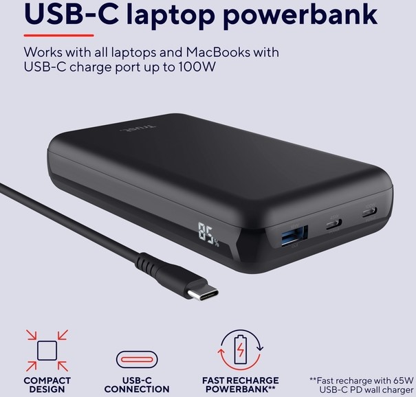 Powerbank Trust Laro laptop 100W 1 Stuk