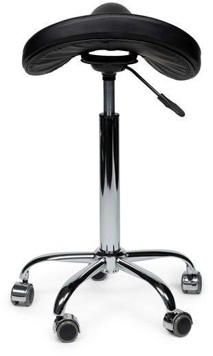 • Zadelkruk Office Premium standaard Zoek jij een lage zadelkruk die comfort, stabiliteit en duurzaamheid combineert? De zadelkruk Office premium standaard is speciaal ontworpen voor situaties waar een medium werkhoogte gewenst is. Het zadel is opgebouwd uit 5 centimeter dik koud schuim – uniek in Nederland – dat dankzij zijn veerkracht en ademend vermogen langdurig zitcomfort garandeert. De ergonomische zadelvorm bevordert een gezonde houding en helpt fysieke klachten voorkomen, zelfs bij intensief gebruik. De zitting is afgewerkt met extra stevig kunstleer dat luxe oogt, slijtvast is én eenvoudig schoon te maken. Het robuuste zwarte voetenkruis zorgt in combinatie met harde wielen voor uitstekende stabiliteit en wendbaarheid. Dankzij de traploos instelbare gasveer (verkrijgbaar in drie hoogtes) pas je de zithoogte eenvoudig aan jouw werkplek aan. Kenmerken: