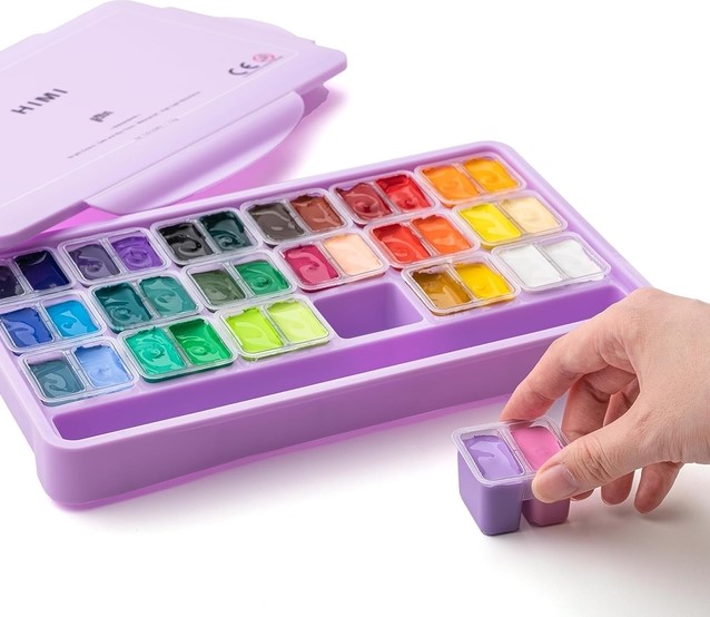 Gouache is een dekkende verf waarmee je mooie, streeploze en matte oppervlakken kunt schilderen. De verf is waterverdunbaar en droogt binnen enkele minuten, dus je kan lekker vlot doorwerken. Te gebruiken op verschillende ondergronden zoals papier, karton en hout. Gouacheverf behoort tot de serie wateroplosbare verf. Deze verf is gemaakt van dezelfde bindmiddelen en pigmenten als waaruit waterverf is samengesteld. Gouache heeft als toevoeging blanc fixe wat de verf zijn dekking geeft. Dit is ook meteen het verschil met aquarelverf. Door de dekkracht kan met gouache meer pasteus worden geschilderd. De dekkracht maakt het ook makkelijker om correcties te maken en kan je met lichte kleuren over donkere kleuren schilderen in tegenstelling tot aquarel. Bij aquarel zal de transparantie ervoor zorgen dat lichte kleuren de donkerder schaduwen die eronder liggen niet zullen bedekken.De gouache set met 36 unieke opvallende levendige gouache kleuren biedt je een uitstekende selectie van levendige kleuren om je kunstwerk tot leven te brengen, ideaal voor professionele kunstenaars, jonge aspirant-kunstenaars, schilderliefhebbers, tieners en kinderen. Verbeterd en uniek ontwerp met Twin split cups met uitstekend afdichtingsdeksel houdt je gouache-verf nat en romig voor je prachtige schilderwerkjes, draagbaar formaat, gemakkelijk mee te nemen, perfect om binnen of buiten te leren schilderen. Elke kleur heeft een inhoud van 12 gram (ca. 12ml). En heeft een fantastische dikke consistentie die penseel- of spatelafdrukken zal vasthouden en je werk schitterende textuur zal geven. Gemaakt van milieuvriendelijk verfmateriaal met de certificeringen ACMI, EN71-3 en EN71-9. De gouache-verf van deze set heeft rijke pigmenten, is romig, niet giftig en wasbaar. Geschikt voor kunstenaars, volwassenen, tieners en kinderen. De verf zal niet barsten of afbrokkelen wanneer ze droog is en kan worden gereactiveerd met water. De nieuwe gouache-verfset wordt geleverd met een eenvoudig palet en kleurenkaart.