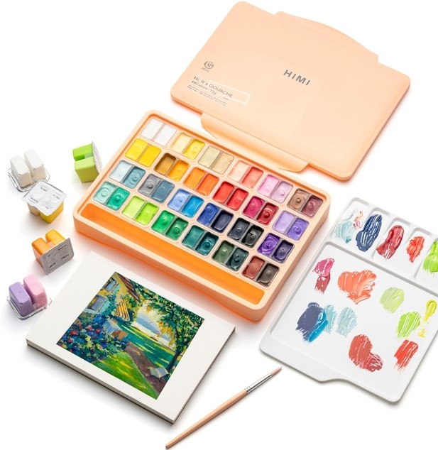 Gouacheverf behoort tot de serie wateroplosbare verf. Deze verf is gemaakt van dezelfde bindmiddelen en pigmenten als waaruit waterverf is samengesteld. Gouache heeft als toevoeging blanc fixe wat de verf zijn dekking geeft. Dit is ook meteen het verschil met aquarelverf. Door de dekkracht kan met gouache meer pasteus worden geschilderd. De dekkracht maakt het ook makkelijker om correcties te maken en kan je met lichte kleuren over donkere kleuren schilderen in tegenstelling tot aquarel. Bij aquarel zal de transparantie ervoor zorgen dat lichte kleuren de donkerder schaduwen die eronder liggen niet zullen bedekken. Met deze kleuren kun je prachtige kleurencombinaties maken. De gouache is een dekkende verf waarmee je mooie, streeploze en matte oppervlakken kunt schilderen. De verf is waterverdunbaar en droogt binnen enkele minuten, dus je kan lekker vlot doorwerken. Te gebruiken op verschillende ondergronden zoals papier, karton en hout.Elke kleur heeft een inhoud van 12 gram (ca. 12ml). En heeft een fantastische dikke consistentie die penseel- of spatelafdrukken zal vasthouden en je werk schitterende textuur zal geven. De gouache set met 48 unieke opvallende levendige gouache kleuren biedt je een uitstekende selectie van levendige kleuren om je kunstwerk tot leven te brengen, ideaal voor professionele kunstenaars, jonge aspirant-kunstenaars, schilderliefhebbers, tieners en kinderen. Verbeterd en uniek ontwerp met Twin split cups met uitstekend afdichtingsdeksel houdt je gouache-verf nat en romig voor je prachtige schilderwerkjes, draagbaar formaat, gemakkelijk mee te nemen, perfect om binnen of buiten te leren schilderen. Gemaakt van milieuvriendelijk verfmateriaal met de certificeringen ACMI, EN71-3 en EN71-9. De gouache-verf van deze set heeft rijke pigmenten, is romig, niet giftig en wasbaar. Geschikt voor kunstenaars, volwassenen, tieners en kinderen. De verf zal niet barsten of afbrokkelen wanneer ze droog is en kan worden gereactiveerd met water. De nieuwe gouache-verfset wordt geleverd met een eenvoudig palet en kleurenkaart.