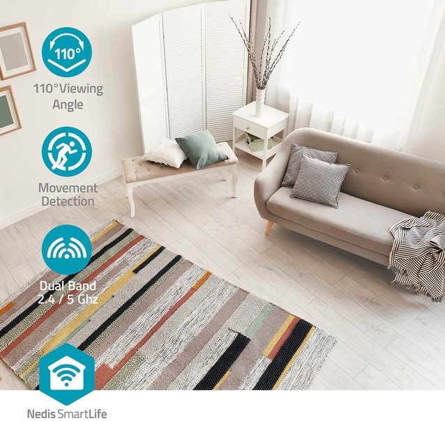 • Deze gebruiksvriendelijke Wi-Fi Smart Indoor Camera met magnetische voet kan eenvoudig worden aangesloten op uw bestaande Wi-Fi-netwerk. De camera is ideaal om kamers van uw huis te bewaken en elk geluid of beweging op te nemen, of u nu thuis of onderweg bent. De Nedis SmartLife-app waarschuwt je bij beweging en geluid, zodat je op tijd kunt ingrijpen.