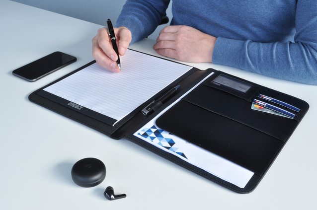 • Deze Business Classy conferentiemap is handgemaakt van hoogwaardig kunstleer in Dutch Design. Bevat 8 opberg- en insteekvakken , waarin accessoires zoals pen, visitekaartjes en documenten opgeborgen kunnen worden. Voorzien van een binnenvak voor A4 documenten, een binnenvak voor A5 documenten, 5 kaartvakjes, een pennenlus, inclusief A4 notitieblok (20 vel). Business Classy conferentiemappen combineren praktisch gebruik met een luxe en minimalistisch Dutch Design. Voor een professionele en stijlvolle indruk bij elke gelegenheid.Met de verscheidenheid aan goed doordachte vakken neem je jouw documenten overzichtelijk geordend mee naar iedere afspraak.