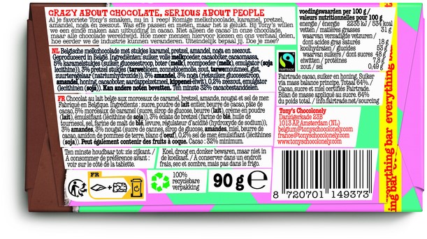 Chocolade Tony Chocolonely melk everything 90 gram 90 Gram
