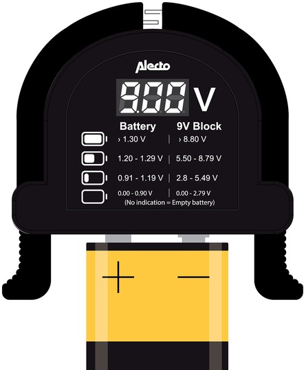 • De Alecto BTT2 is een universele batterijtester waarmee je op het digitale display in één oogopslag kunt zien wat de status is van de capaciteit van je batterij.