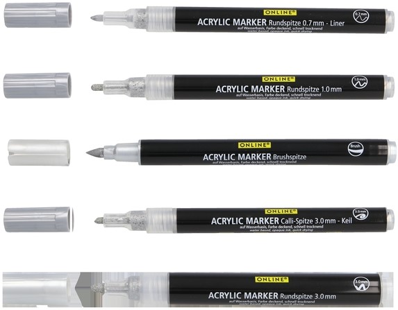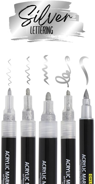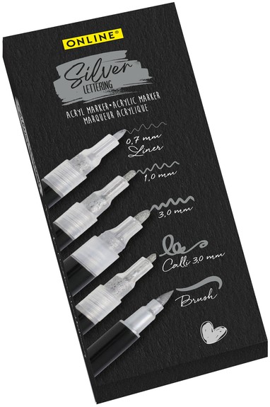Acrylmarker Online lettering 5 breedtes zilver 5 Stuk