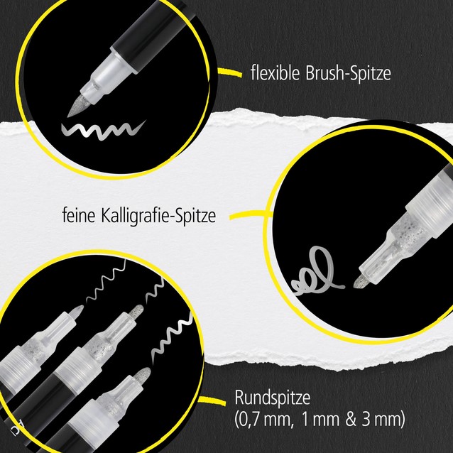 • Geschikt voor gebruik op papier, karton, zwart papier en meer