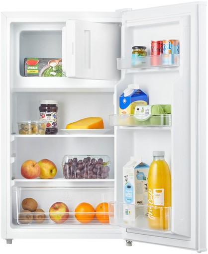 De Tomado TRT4702W is een tafelmodel koelkast met vriesvak met een totale netto inhoud van 80 liter. Dit is voldoende koel- en vriesruimte voor huishoudens van 1 tot 3 personen. Dit zorgt ervoor dat jij al jouw boodschappen er keurig in kwijt kan. De koelkast is voorzien van een vriesvak, 2 glazen draagplateaus, 1 groentelade en 3 vakken in de deur. Zodra je de deur van de koelkast opent, springt de binnenverlichting aan zodat je goed zicht hebt. Dankzij het lage geluidsniveau van 39 dB hoor je nauwelijks dat hij aanstaat!