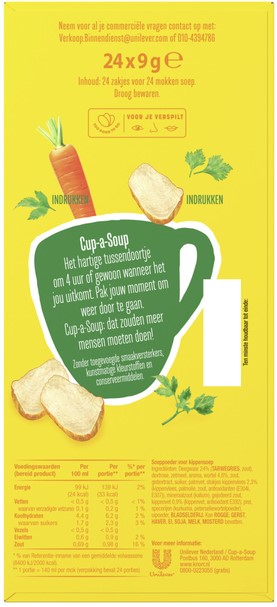 • In een verpakking Cup-a-Soup Kip zitten 24 heerlijke zakjes Cup-a-Soup.
